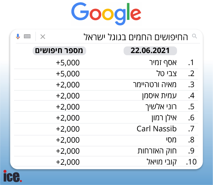 קונסול ישראל בניו-יורק הוא לא תפקיד שמעורר עניין רב בדרך כלל - ספק אם רוב הישראלים זוכרים מי היה האדם הקודם שכיהן בתפקיד (דני דיין, לשעבר יו"ר מועצת יש"ע שהתמודד בבחירות לכנסת הנוכחית מטעם "תקוה חדשה"). אבל המינוי של אסף זמיר לתפקיד על ידי ראש מפלגתו, יאיר לפיד, הצליח לעורר מספיק עניין כדי להזניק את זמיר לראש רשימת החיפושים של הישראלים בגוגל אתמול. גם בת זוגו, מאיה ורטהיימר, עוררה עניין לאור המעבר הקרוב לתפוח הגדול והגיעה למקום השלישי.