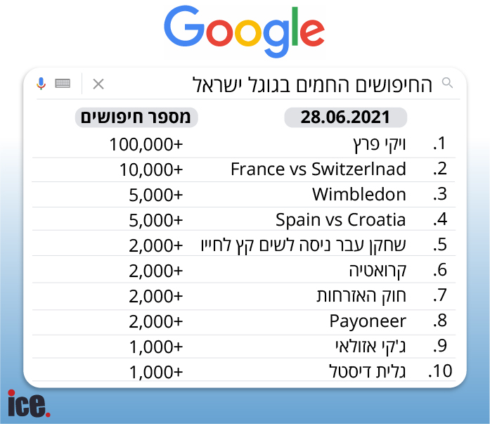 הסקרנות בנוגע לזהותו שהתחלפה באבל על מותו הפכו את ויקי פרץ לאיש המחופש בישראל אתמול. גם יורו 2020 עניין את הישראלים, ואפילו טניס דחק את הפוליטיקה לתחתית העשירייה | החיפושים החמים בגוגל