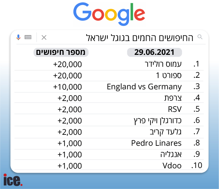 הכדורגלן שהתאבד, הילד שמת ממחלה נשימתית שאינה קורונה וההתנהלות השנויה במחלוקת של עמוס רולידר גרמו לישראלים להזדעזע ולחפש מידע נוסף. וגם: אילו נבחרות ביורו הישראלים נהנים לעודד? החיפושים החמים בגוגל