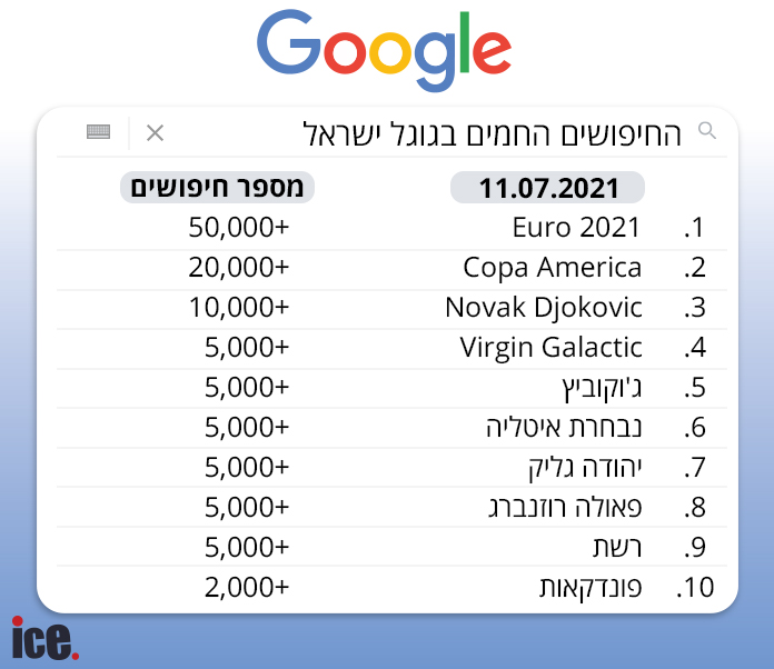 הטיסה ההיסטורית של הבריטי שעקף את בזוס ומאסק בדרך לחלל הפסידה בחיפושים לשני משחקי כדורגל ושחקן טניס אחד. ומי הח"כ לשעבר שהתברג לנושאים החמים בישראל בגלל טעות תמימה? החיפושים החמים בגוגל