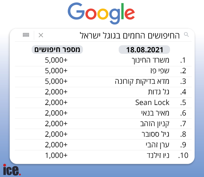 מה עשה משרד החינוך פחות משבועיים לפני תחילת הלימודים, מי האושייה שהצליחה לעורר סערה גדולה יותר מהתמונה המפתיעה של גל גדות מאחורי הקלעים ומה קורה עם בהלת הקורונה? החיפושים החמים בגוגל