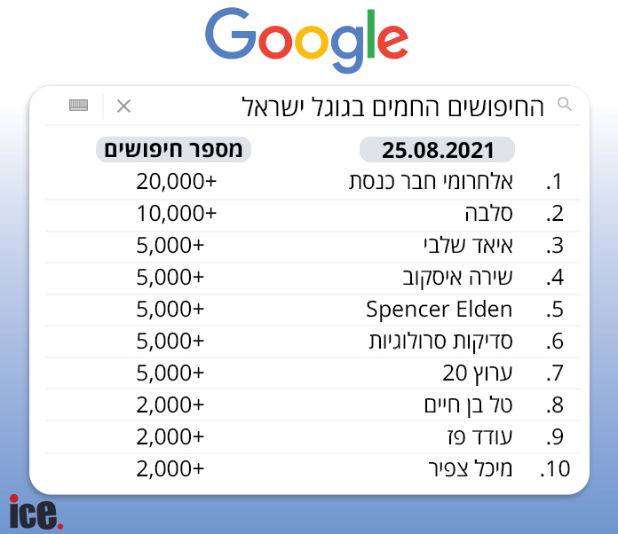 איאד שלבי, המדליסט האולימפי הישראלי הראשון במשחקים הפראלימפיים בטוקיו, אמנם יזכה למענק שווה בגובהו לזה של המדליסטים ארטיום דולגופיאט ולינוי אשראם, שזכו במדליות כאלו באולימפיאדה הרגילה – אך נראה שהקהל בישראל לא מתגאה במדליה שלו באותה מידה, שכן בניגוד לקודמיו, הוא לא כבר את ראש טבלת החיפושים החמים שמפרסמת גוגל, אלא רק את המקום השלישי, עם נתון נמוך למדי של פחות מ-10,000 חיפושים.