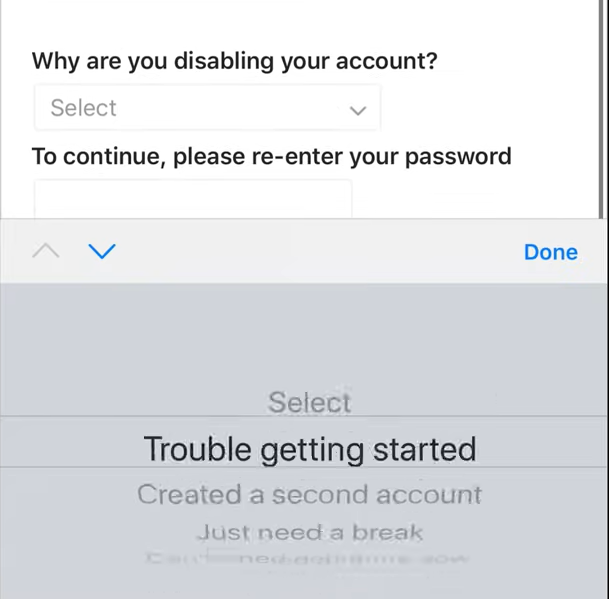 כאן בחלון הקטן שנפתח עליכם לבחור סיבה מדוע אתם רוצים להשבית את החשבון שלכם, בחרו: