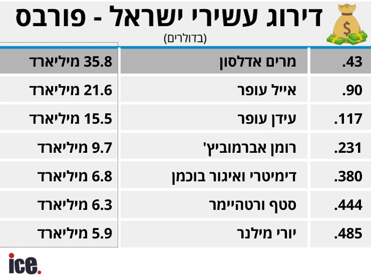 בצל פרשת התרומה לזק"א, המיליארדר טיפס יותר מ-20 מקומות ברשימה העולמית, והונו העצמי מוערך בלא פחות מ-9.7 מיליארד דולר. האישה החזקה בישראל יציבה במקום הראשון עם 35.8 מיליארד דולר. וגם: אייל עופר ממשיך את רצף העליות