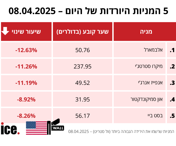 ענף הטכנולוגיה ספג את המכה הכבדה ביותר. מניית אנבידיה, ענקית השבבים שזינקה ב-7% בתחילת היום, התהפכה וסיימה בירידה של כ-1%. גם אפל סבלה קשות, עם ירידה של כמעט 2%, בדרכה לרשום את הביצועים הגרועים ביותר שלה בארבעה ימי מסחר רצופים מאז המשבר הפיננסי ב-2008.