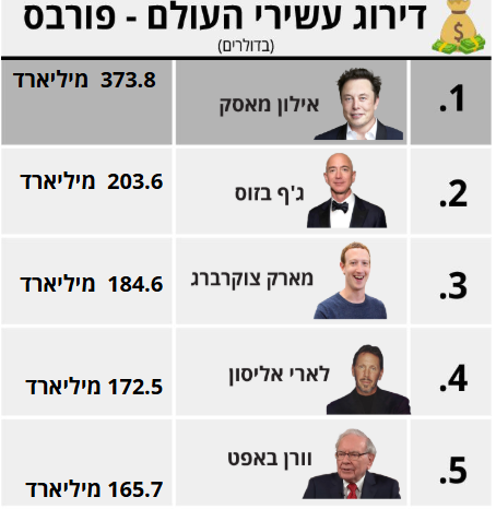 מאסק ובזוס נוסקים, ומי הגדיל את הונו ב-7% השבוע? הטלטלה בשווקים העולמיים נמשכת, ובאופן מפתיע חמשת האנשים העשירים ביותר בעולם גורפים סכומי ענק