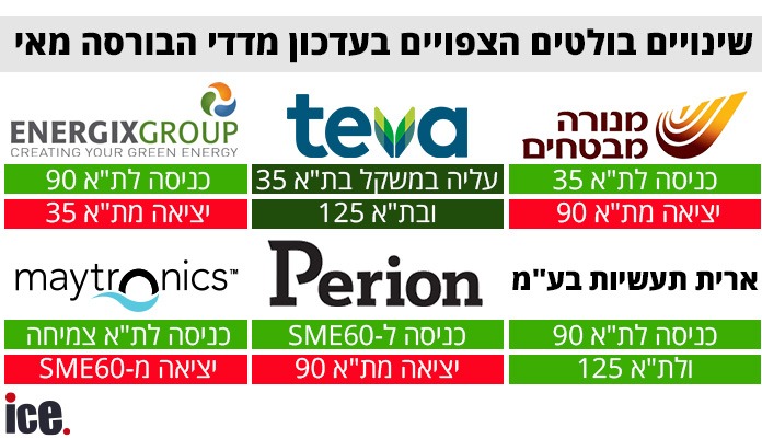 בסיום יום המסחר היום ייכנסו לתוקפם שינויים במדדי הדגל בבורסה בתל אביב. לקראת העדכון, מגדל שוקי הון בחנה את השינויים הבולטים הצפויים להערכתה במדדי המניות המובילים ומסמנת את המניות המרכזיות שהיא מעריכה שירכזו את עניין המשקיעים.