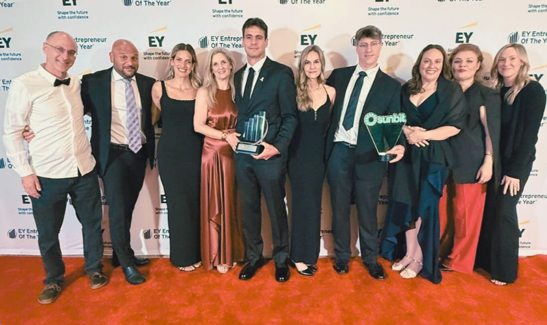 ארד לברטוב, מייסד חברת Sunbit, זכה בפרס היוקרתי "יזם השנה 2025" ע"י פירמת הייעוץ וראיית החשבון EY. ארז לברטוב: "נרגש מאוד מהזכייה". דובי פרנסס, מייסד קרן Group 11 שהשקיעה בחברת הפינטק, הצטרף לחגיגה