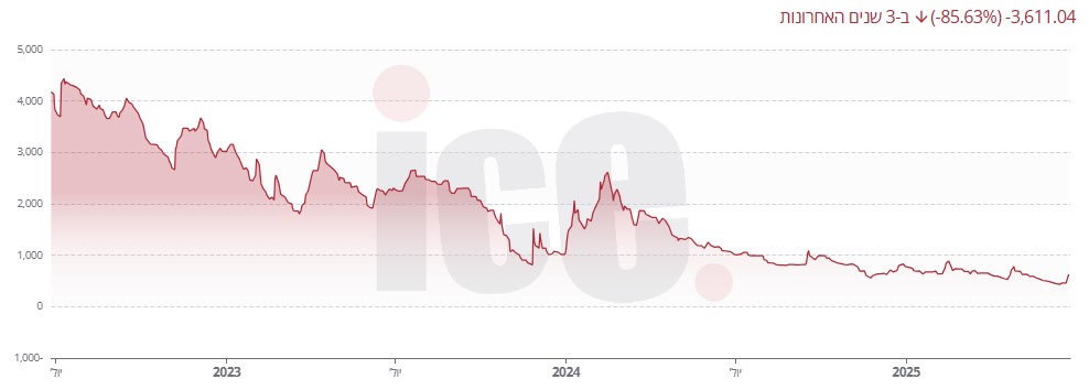 הזינוק המטאורי במניה מגיע לאחר תקופה קשה מאוד למשקיעים. כפי שניתן לראות בגרף המניה בחמש השנים האחרונות, נור אינק חוותה מגמת ירידה כמעט רציפה, שחיקת ערך של עשרות אחוזים, ואובדן אמון מצד השוק. גם מתחילת 2025, המשיכה המניה במגמה השלילית, עד להודעה הדרמטית השבוע.