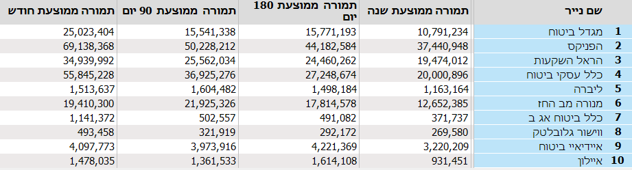 החדירה לתיקים הפאסיביים על מדד ת"א-ביטוח היא נמוכה, בעיקר בהשוואה לבנקים וזאת למרות הגידול המשמעותי ברווחים ובשווי של חברות הביטוח בשנתיים האחרונות. לדוגמא, שווי חמשת חברות הביטוח עומד על כ-83 מיליארד שקל ואילו ושווי ההשקעות במדד ת"א-ביטוח עומד על כ-2.7 מיליארד שקל. לצורך השוואה, שווי חמשת הבנקים הגדולים עומד על כ- 300 מיליארד שקל ואילו ושווי ההשקעות על מוצרים פאסיביים עומד על כ-32 מיליארד שקל. קרי, אחוז החדירה לתיקים הפאסיביים של כ-11% בבנקים לעומת אחוז חדירה זניח יחסית של פחות מ-3% בחברות הביטוח.