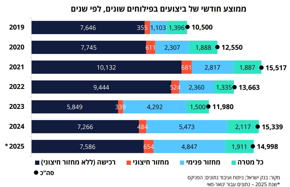 המסקנה היא שהמחזור הפנימי הפך לעוגן מרכזי בפעילות – לא רק "אופציה", אלא מנוע צמיחה. כאן אפשר לראות מה קרה לממוצע החודשי של הביצועים בפילוחים שונים: