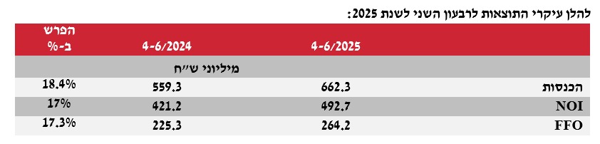 "תוצאות המחצית הראשונה ובעיקר הרבעון השני הושפעו לטובה מפתיחת המרכזים החדשים בישראל, מרכישות של נכסים חדשים בחו"ל וכן משיפור בביצועים של המרכזים הקיימים. יחד עם זאת, התוצאות מבטאות באופן חלקי בלבד את ההכנסות מהנכסים החדשים ובעיקר מגדל המשרדים בגלילות שהחל להתאכלס בסוף הרבעון, כאשר שיעור השיווק בו עומד על 70% בקירוב ואנו מנהלים מו"מ על יתר השטחים שנותרו לשיווק".