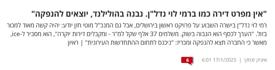 לאחרונה שוחח לוי עם ICE וסיפר כי הוא שוקל לגשת למכרזים בשדה דב. מהלך כזה יכניס אותו "לליגת של הגדולים" בתחום הנדל"ן. חברות כמו י.ח דמרי, ישראל קנדה, אחים חג'ג', יוסי אברהמי, לוזון-רונסון ואחרות כבר שם.