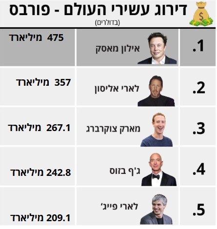 דירוג עשירי העולם של מגזין "פורבס" פורסם כמדי שבוע והביא עמו רכבת הרים של ממש בכל הנוגע לצמרת הגבוהה. אילון מאסק, הבעלים של טסלה וטוויטר, רשם שבוע קשה מאוד עם הפסדים בדמות 5.1 מיליארד דולר, כאשר הונו האישי עומד על 475 מיליארד דולר.