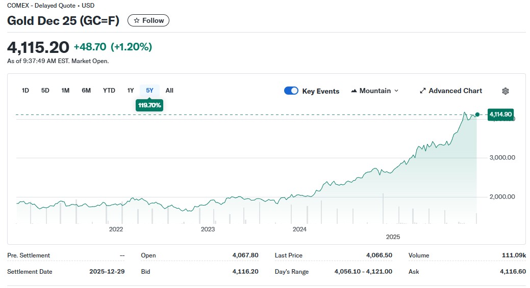 מי שחיפש "חוף מבטחים" ושם את כספו על המתכת הצהובה, עקף בסיבוב את מניות הטכנולוגיה. הזהב זינק בכמעט 120% בחמש שנים, כשהוא משמש עוגן של יציבות בתקופות של אינפלציה ואי-וודאות גיאופוליטית. הנתון הזה מוכיח שההשקעה המסורתית ביותר היא עדיין אחת הרלוונטיות שיש.