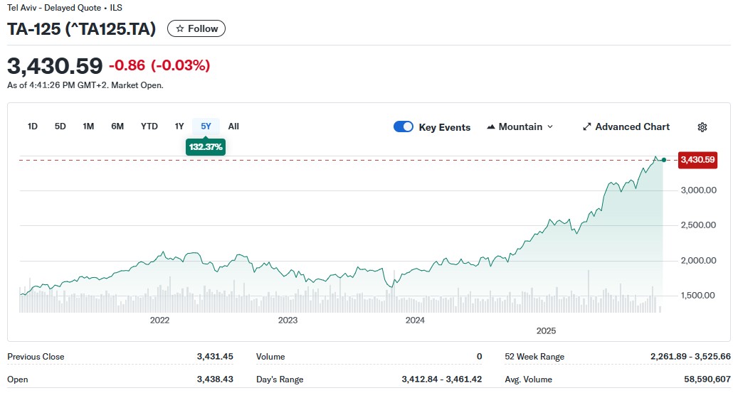 כאן נמצא הסיפור הגדול. בניגוד לדעה הרווחת, מדד הדגל של הבורסה הישראלית לא רק שלא השתרך מאחור - הוא הציג ביצועים פנומנליים. למרות המלחמה, חוסר היציבות הפוליטי והאתגרים הכלכליים, 125 החברות הישראליות הגדולות הוכיחו חוסן מדהים ועקפו בתשואה את המדדים המובילים של ניו יורק.