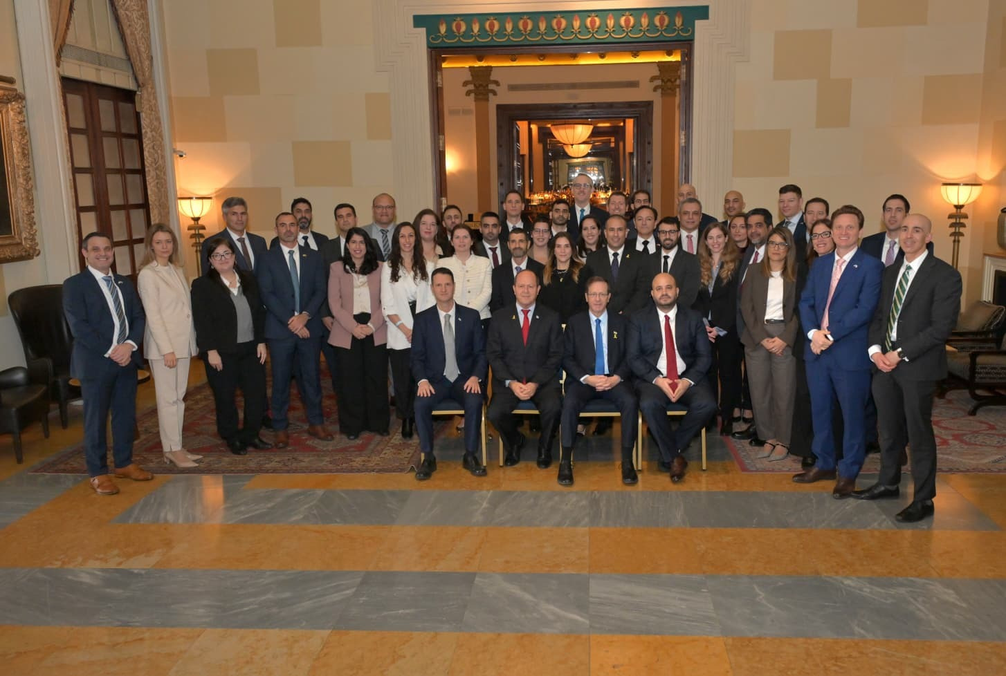 הנספחים הכלכליים של ישראל עם נשיא המדינה, יצחק הרצוג, ושר הכלכלה, ניר ברקת. (שלומי אמסלם).