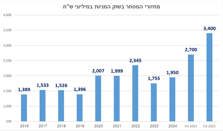 ניתן לראות את מגמת העלייה במחזורי המסחר בשנים האחרונות בתרשים הבא: