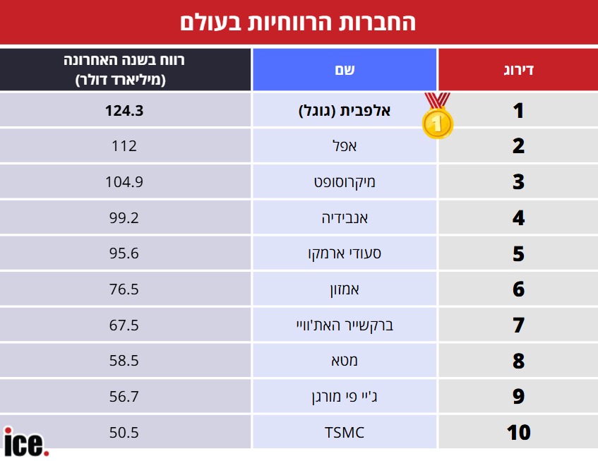 3 חברות מרוויחות מעל ל-100 מיליארד דולר בשנה - האם אנבידיה היא אחת מהן ואילו חברות מחוץ לסקטור הטכנולוגיה נכנסו ל-10 החברות הרווחיות בעולם?