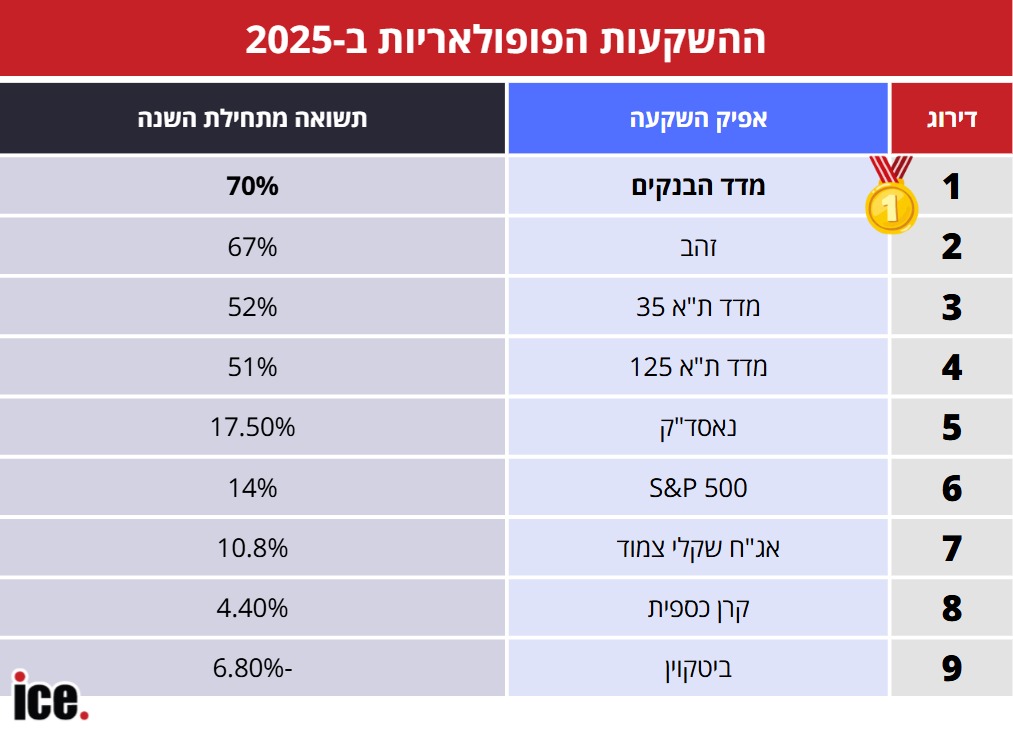 המשקיעים הישראלים שהאמינו בבנקים המקומיים לקחו הביתה את הפרס הגדול. אבל חשוב לזכור: תשואות עבר לא מבטיחות תשואות עתיד, וההשקעה המוצלחת הבאה יכולה להפתיע.