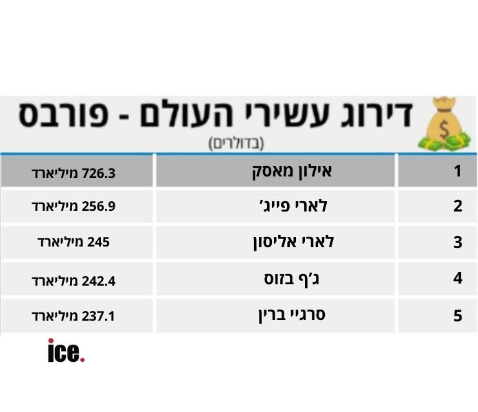 דירוג עשירי העולם של מגזין "פורבס" מביא איתו התפוצצות מוחלטת של הצמרת הגבוהה: אילון מאסק נופל בעשרות מיליארדים, לארי אליסון התאושש מהירידות החדות
