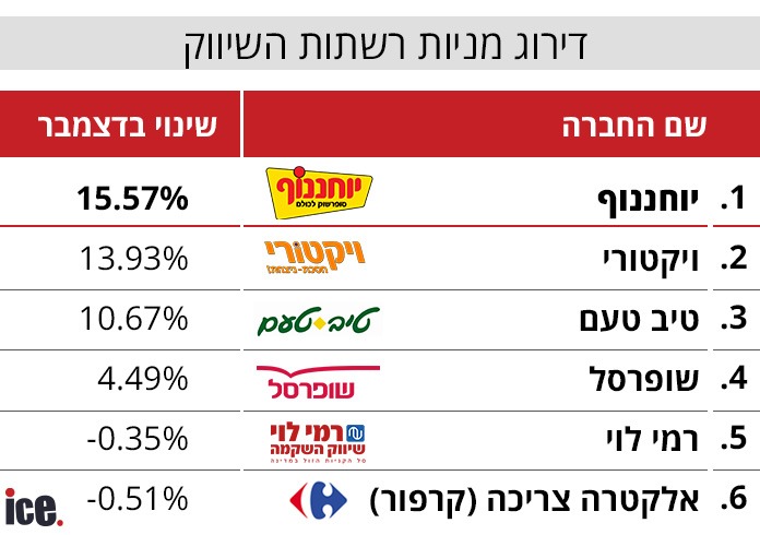 אם אתם מחזיקים ביוחננוף, ויקטורי או טיב טעם - יש סיכוי טוב שתמשיכו לראות עליות, במיוחד אם נתוני הלמ"ס על האטה בצמיחה (עלייה של רק 0.6% בפדיון ספטמבר-נובמבר לעומת 6.2% בקיץ) לא יפגעו בביקושים.