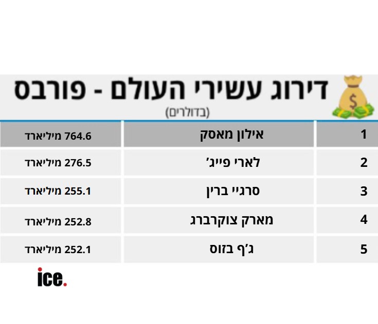 דירוג עשירי העולם של מגזין פורבס מציג שבוע מטורף בצמרת: אילון מאסק רושם הפסדי עתק של 10.6 מיליארד דולר, מייסדי גוגל ממשיכים בתקופה החלומית שלהם, צוקרברג חוגג הכנסות של 23.5 מיליארד דולר ומה קרה עם הכסף של ג'ף בזוס?