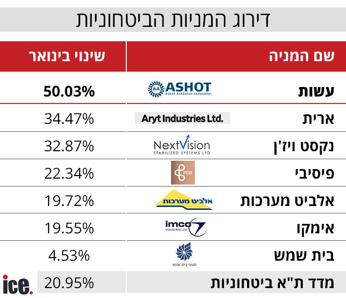 דירוג המניות הביטחוניות בינואר: זו המניה שזינקה 50%