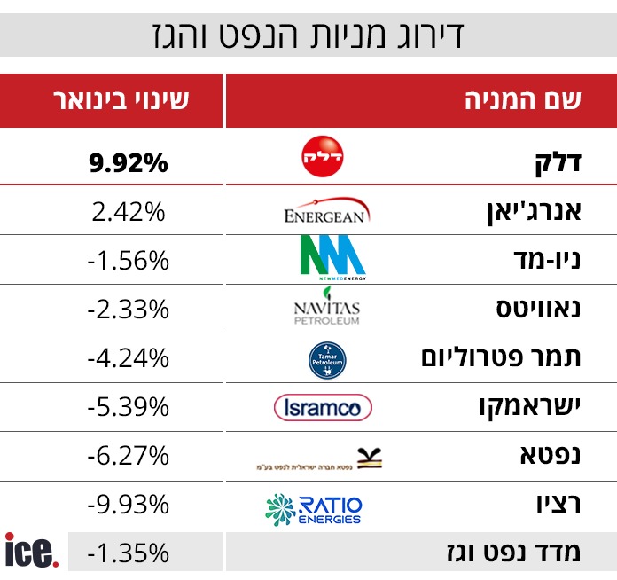 הפרדוקס בולט: בחודש שבו המתיחות עם איראן כבר הייתה באוויר ומחירי הנפט החלו לטפס, חלק גדול מחברות הנפט והגז הישראליות דווקא ירדו. ההסבר טמון בשילוב של גורמים - אי ודאות ביטחונית שהכבידה על הסקטור כולו, חשש מפגיעה פיזית בתשתיות הגז הישראליות, ותמחור זהיר של משקיעים שהמתינו לראות כיצד תתפתח התמונה.