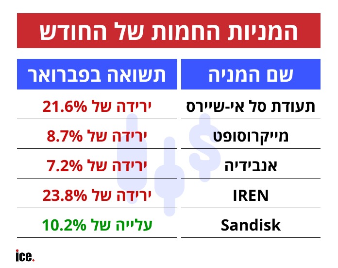 מניית IREN סגרה את חודש פברואר בירידה של 23.8%.