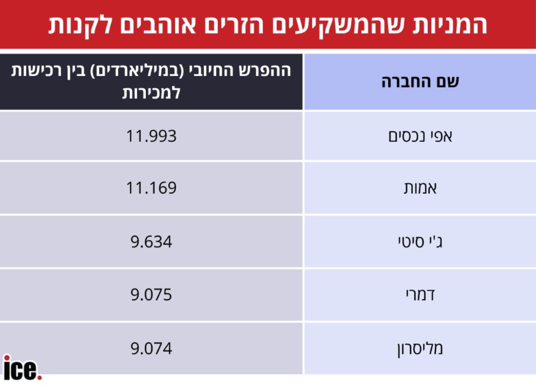 בדקנו מהן 5 מניות הבנייה והנדל"ן שהמשקיעים הזרים הכי אוהבים מאז תחילת המלחמה. בטבלה כאן למטה, אנחנו מציגים לכם את ההפרשים החיוביים בין סך הרכישות לסך המכירות. בחלק הבא, נציג לכם את המניות שהמשקיעים הזרים הכי אוהבים למכור.