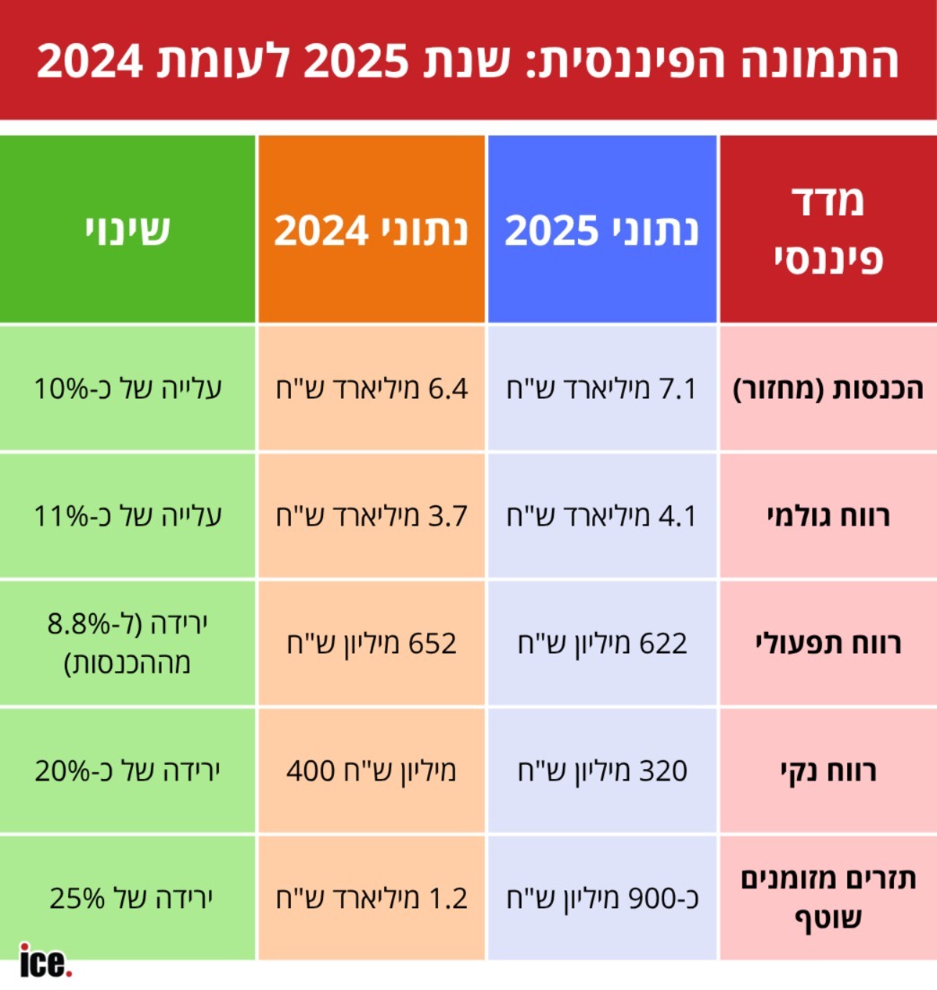 גם הרווח הגולמי הציג שיפור מרשים - כ-4.1 מיליארד שקל, שיפור של כ-11% לעומת אשתקד, עם שיעור רווח גולמי של כ-57.6% לעומת 57.2% ב-2024.