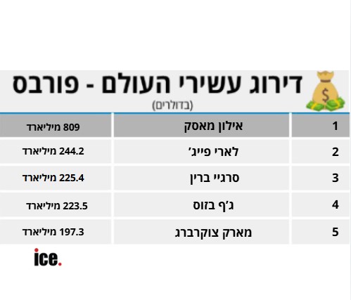 טלטלה בדירוג עשירי העולם של מגזין "פורבס": מאסק רושם הפסדים מטורפים, מייסדי גוגל ממשיך לצנוח, צוקרברג מפסיד 1.6 מיליארד דולר ומה עשה השבוע ג'ף בזוס?