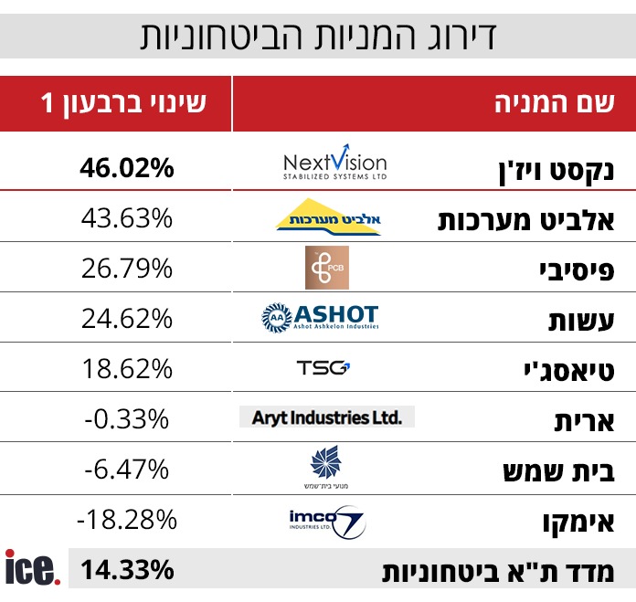 דירוג המניות הביטחוניות ברבעון הראשון: המלחמה הפתיעה את המשקיעים