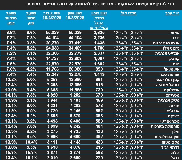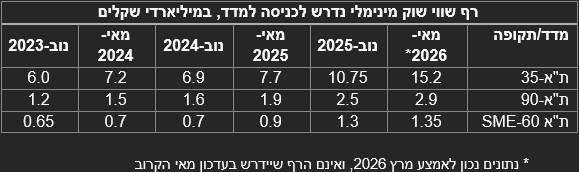 נתונים נכון לאמצע מרץ 2026, ואינם הרף שיידרש בעדכון מאי הקרוב.