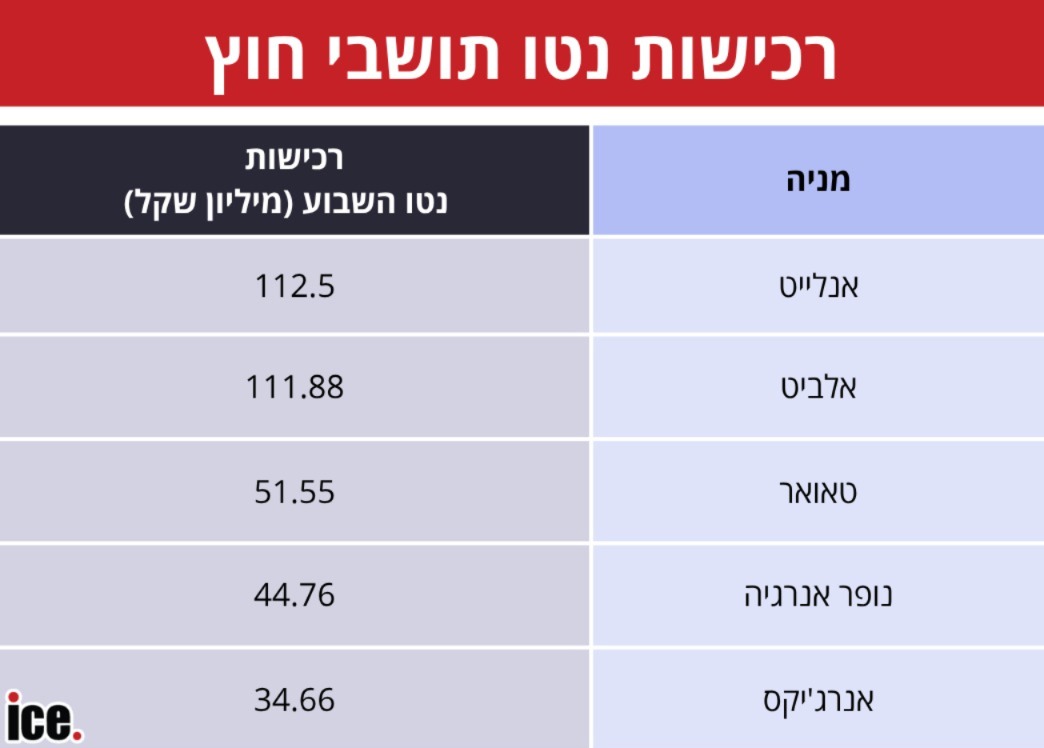 המניה שהמשקיעים זרים הביעו בה את האמון הגדול ביותר בשבוע שעבר עם רכישות נטו של 112.5 מיליון שקל היא אנלייט אנרגיה.