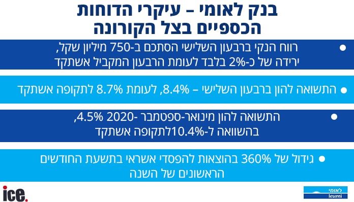 "הגידול המשמעותי בשיעור ההוצאה להפסדי אשראי נובע מהשפעת השינויים בסביבה המאקרו-כלכלית על רקע התפרצות גל שני משמעותי בישראל והסגר הנוסף שהוחל בעקבותיו, שהעמיק את השפעת המשבר הכלכלי ואת אי הוודאות לגבי השלכותיו על הכלכלה הישראלית והעולמית", מסבירים בלאומי.