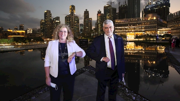 מנכ"ל בנק הפועלים דב קוטלר ומנכ"לית מיקרוסופט ישראל רונית אטד בדובאי. צילום: סיון פרג'