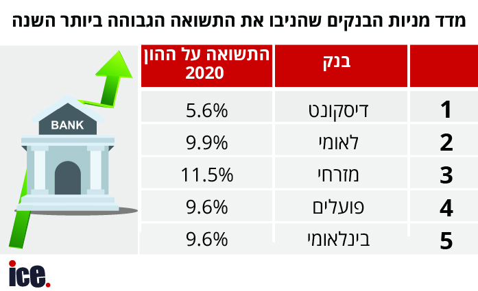 ברמה ענפית הבנקים הציגו תשואה להון של 9.3% ברבעון האחרון של 2020, ובנטרול סעיפים חד פעמיים תשואה להון של 10%. כלומר מדובר על הרבעון הטוב ביותר השנה, הרבה בזכות ההוצאות להפסדי אשראי שהצטמצמו משמעותית ביחס לשלושת הרבעונים הראשונים של 2020. בסיכום השנה התשואה להון עמדה על 6.2%, כאמור תשואה נמוכה בהשוואה לשנים האחרונות, אבל ביחס לשנת משבר מדובר על תוצאות מעודדות וחיוביות.