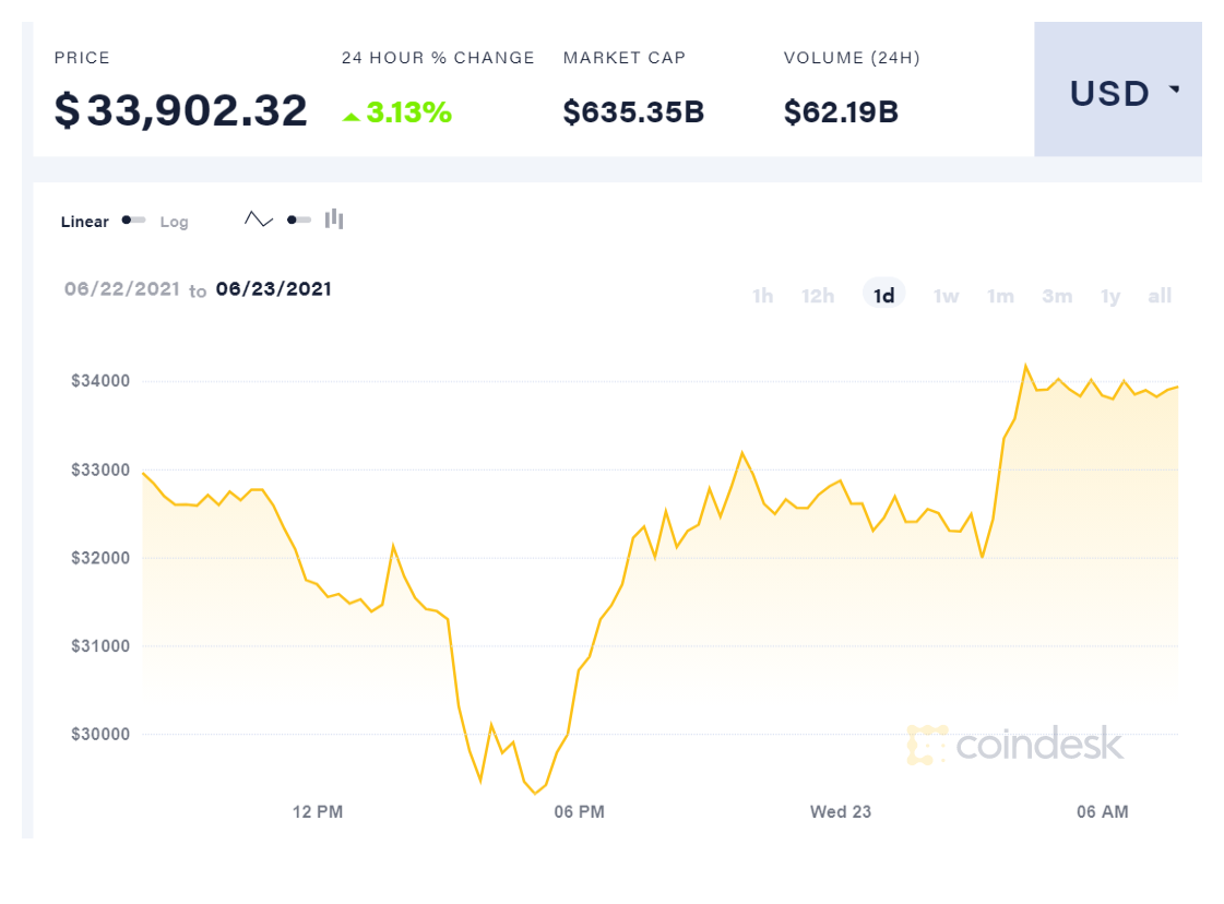 על אף שרשם שפל של 29,300 דולר בלבד למטבע, הכי נמוך מזה כחצי שנה, תוך שעות בודדות המספרים של הביטקוין התייצבו והוא טיפס מעלה וחצה שוב את רף 34 אלף הדולר, שיפור של כ-3.13% בחישוב של 24 שעות, בדרך להתייצבות על 33,902.32 דולר נכון לשעה 8:00 בבוקר שעון ישראל. גם שווי השוק שלו התאושש בדרך ל-635.35 מיליארד דולר.