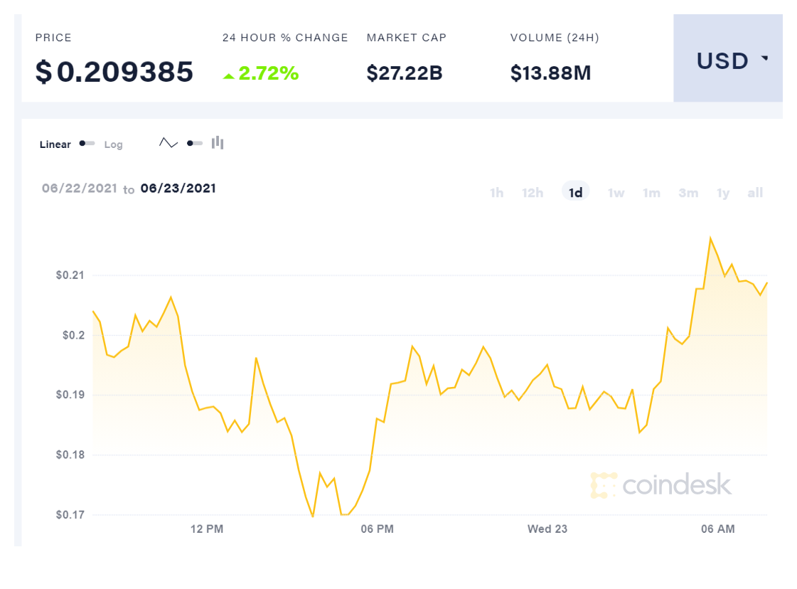 ומה לגבי הדוג'קוין? לאחר שצנח לרמה מדאיגה של 0.16 דולר בלבד, הוא גם כן התאושש וטיפס ב-2.72% תוך 24 שעות לרמה של 0.209 דולר בסך הכל, שווי השוק עלה גם כן לרמה של 27.22 מיליארד דולר.