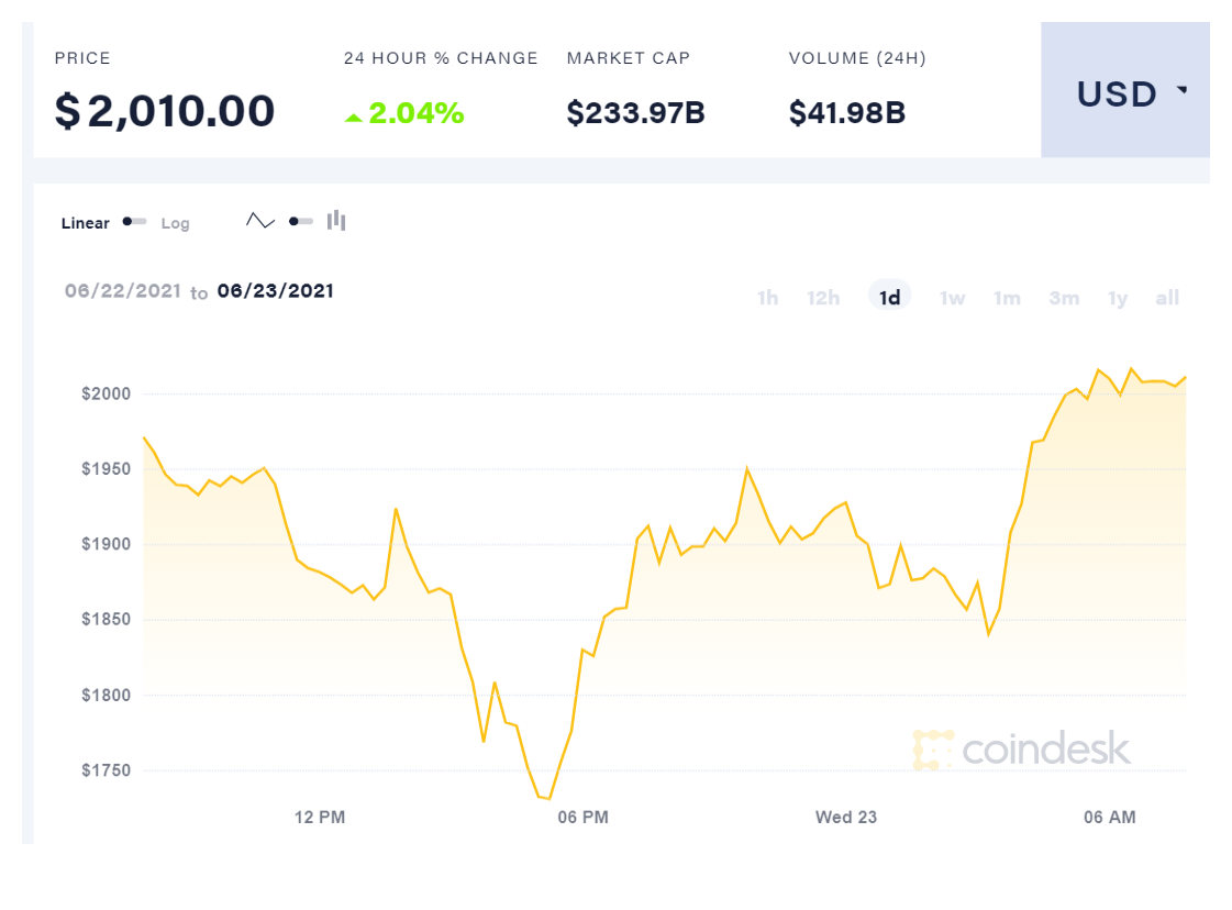 האתריום שכבר ראה את הטייטל '2,000' בורח ממנו, החזיר אותו לידיו עם עלייה של 2.04% ב-24 שעות בדרך לשער של 2,010 דולר בדיוק ושווי שוק למטבע של 233.97 מיליארד דולר בסך הכל.