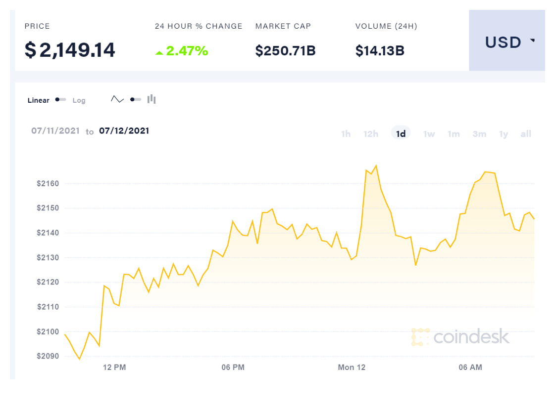 האתריום לעומת זאת טיפס בשיעור של 2.47% בסך הכל לשווי חדש של 2,149 דולר ושווי שוק חדש וגבוה יותר של 250.71 מיליארד דולר. גם האתריום כבר הגיע לערך גבוה יותר, עת נגע לרגע בערך של 2,170 דולר.