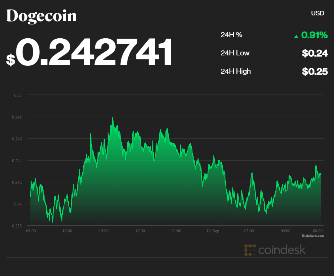דוג'קוין רשם גם כן עלייה מתונה, בשיעור של 0.91% לשער של 0.242 דולר ולשווי שוק של 31.82 מיליארד דולר בסך הכל. ביננס קוין לעומת זאת עלה בשיעור של 0.52% לשער של 407.46 דולר בסך הכל, שווי השוק שלו 68.514 מיליארד דולר.