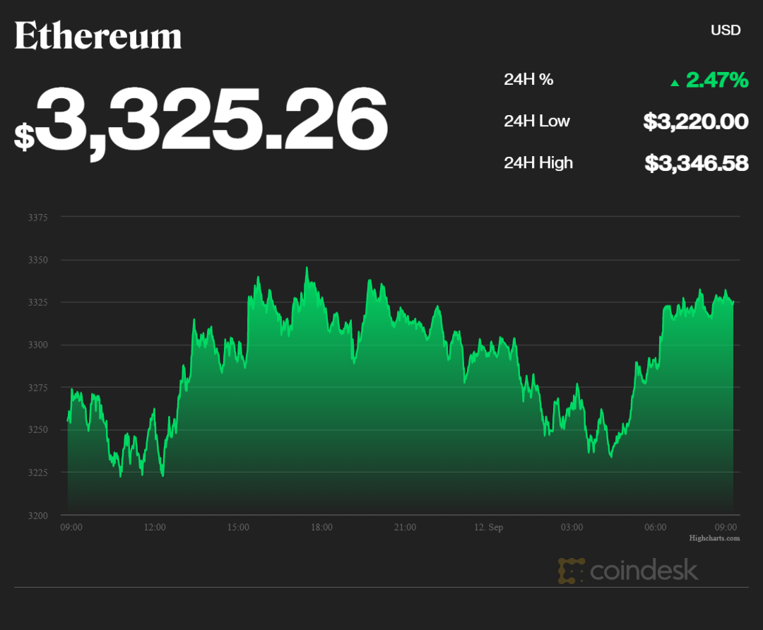 האתריום רשם עלייה אפילו מרשימה יותר בשיעור של 2.47% בדרך לשער של 3,325.26 דולר, זאת כאשר התקרב בסוף השבוע לרמה של 3,100 דולר בסך הכל. שווי השוק של המטבע השני בחשיבותו טיפס ל-389.76 מיליארד דולר.