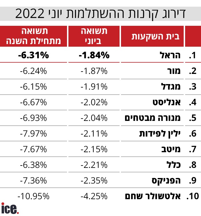המחצית הראשונה של השנה הייתה קשה בשוק ההון, האינפלציה הרימה רא/ות והריבית התחילה לעלות, זה גרם להפסדים בשוק המניות וגם שוק האג"ח שנמכר לציבור "כהשקעה בטוחה" חטף, ולא מעט; אז כמה הפסדם מתחילת השנה? הדירוג המלא
