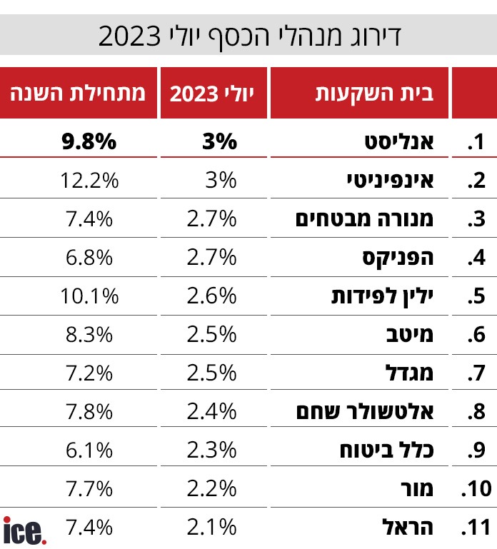 חודש יולי היה חודש טוב לקרנות ההשתלמות וקופות הגמל, אבל בכל זאת יש הבדלים בין מנהלי ההשקעות, כלומר אלה שחשופים יותר לחו"ל ואלה שפחות, אלה שמעדיפים השקעות אלטרנטיביות כדי לייצב תשואה וכן הלאה; דירוג מנהלי הכסף לחודש יולי