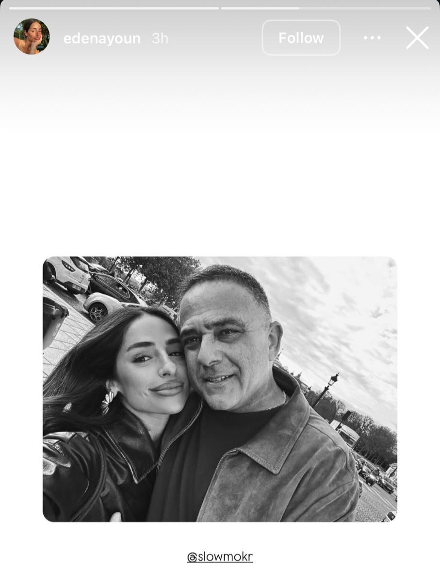 היום פרסמה עדן עיון (28), אחותה של השחקנית ליאנה עיון, בחשבון האינסטגרם הפרטי שלה סטורי ובו צילום זוגי עם שלמה קרמר (59) מהחופשה הרומנטית שלהם בפריז, ותייגה אותו.