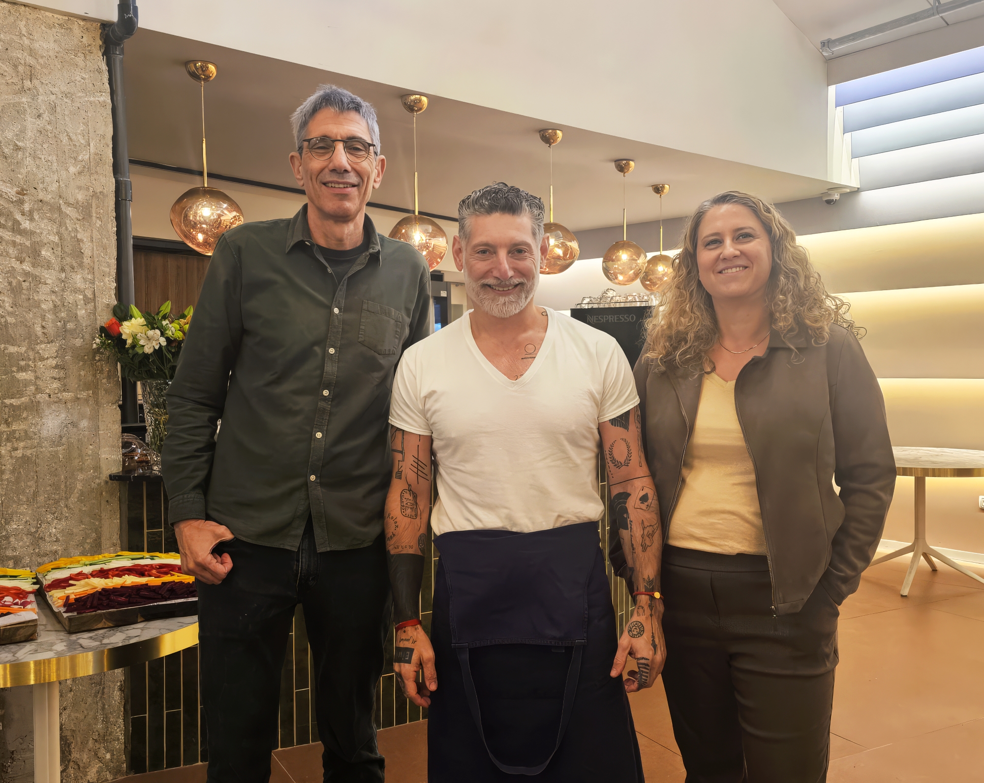 מנכ"לית האוניברסיטה העברית נעמה קאופמן-פס, השף אסף גרניט, רקטור האוניברסיטה העברית פרופ' אורון שגריר. צילום: האוניברסיטה העברית