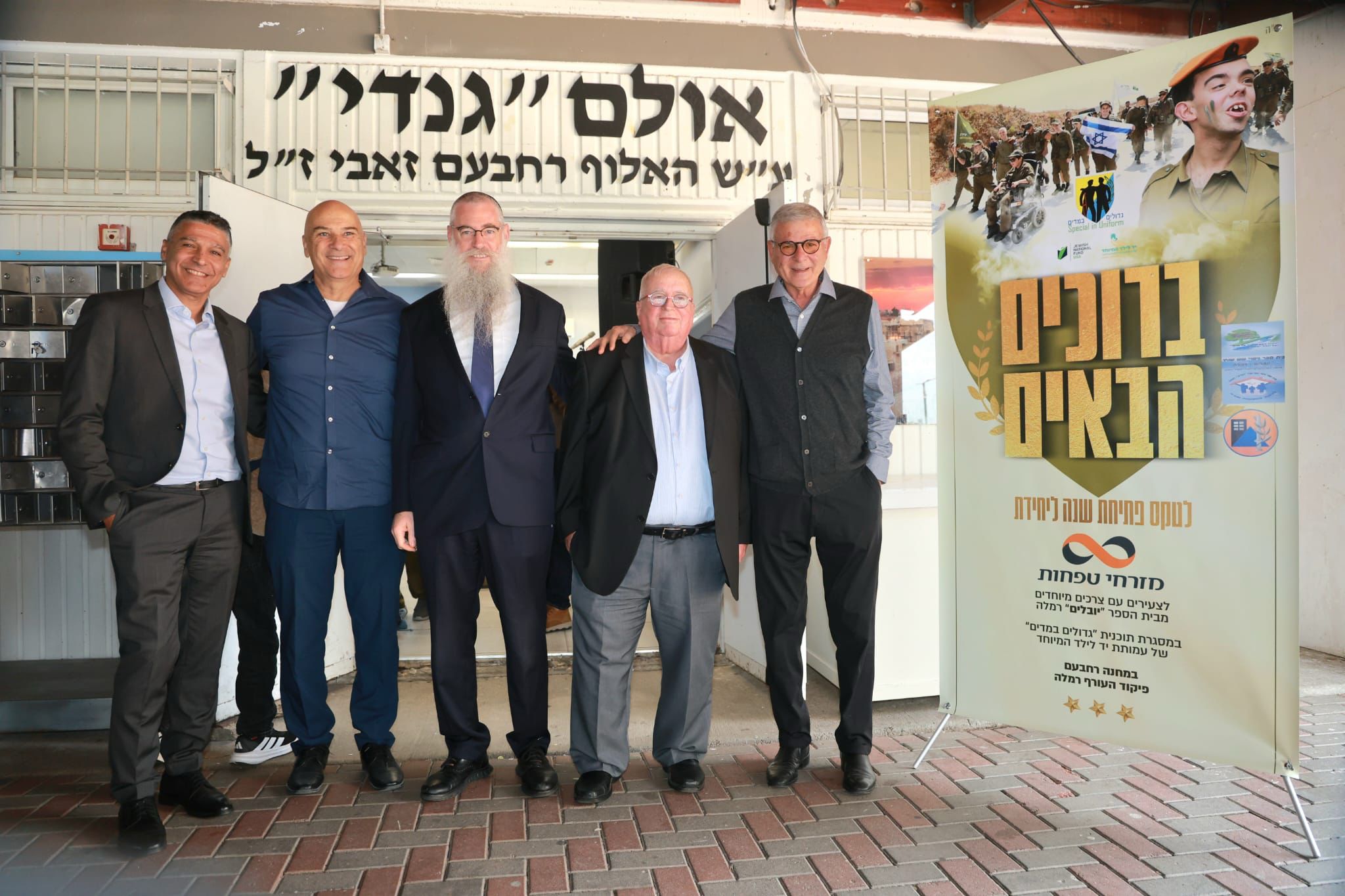 בטקס המרגש שהתקיים השבוע, נכחו: יו״ר בנק מזרחי טפחות אבי זלדמן, מנכ״ל מזרחי טפחות משה לארי, סמנכ״לית ומנהלת חטיבת הון אנושי בבנק מיטל הרוש, יו"ר עמותת יד לילד המיוחד אלוף (במיל') גבי אופיר, מנכ"ל עמותת יד לילד המיוחד הרב מנדי בלינצקי, צוות קשרי קהילה ומתנדבי הבנק, נציגי ביה״ס יובלים, החיילים והמשפחות.